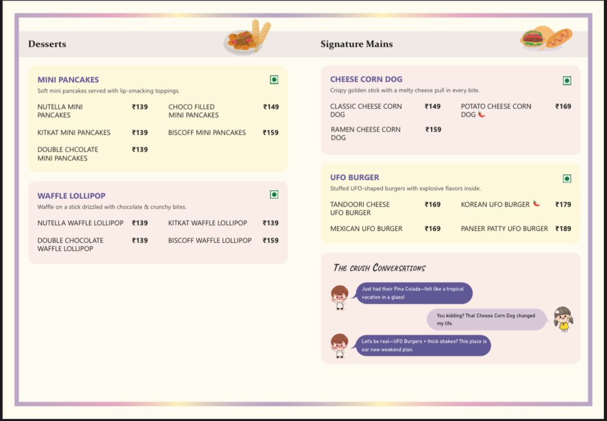 Welcome to BUBBLE CRUSH, a charming cafe tucked away in the vibrant Baani Square of Gurugram. This delightful spot is a must-visit for anyone looking to indulge their taste buds while soaking in a creatively designed atmosphere. The moment you step inside, you'll be greeted by a cute aesthetic that perfectly complements the fun and flavorful menu.